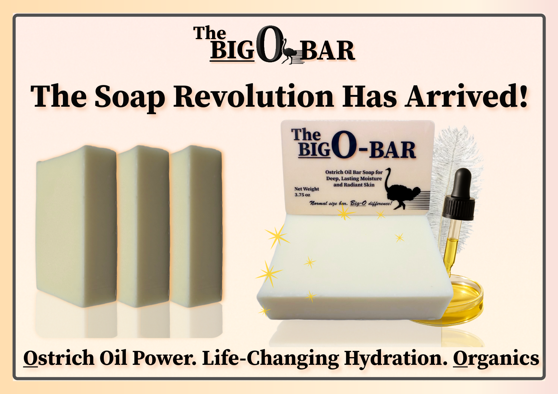 Experience a bar soap engineered for results. The Big O Bar is a performance-driven, omega-rich cleanser built around, and superfatted with certified South Carolina Ostrich Oil — one of nature’s most potent moisturizers. Designed to outperform traditional, and top-tier bar soaps, our formula delivers deep, lasting hydration while helping to repair dry, damaged, or sensitive skin.