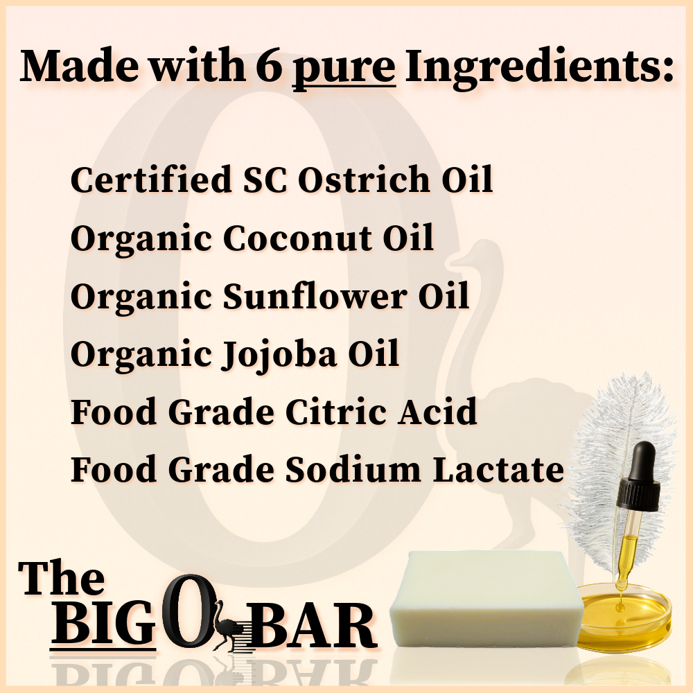 Superfatted with pure South Carolina Certified Ostrich Oil, rich in omegas 3, 6 & 9, this bar helps replenish what time and harsh products take away. Designed to mirror your skin’s natural oils, it deeply hydrates without heaviness — often replacing your need for post-shower moisturizers.